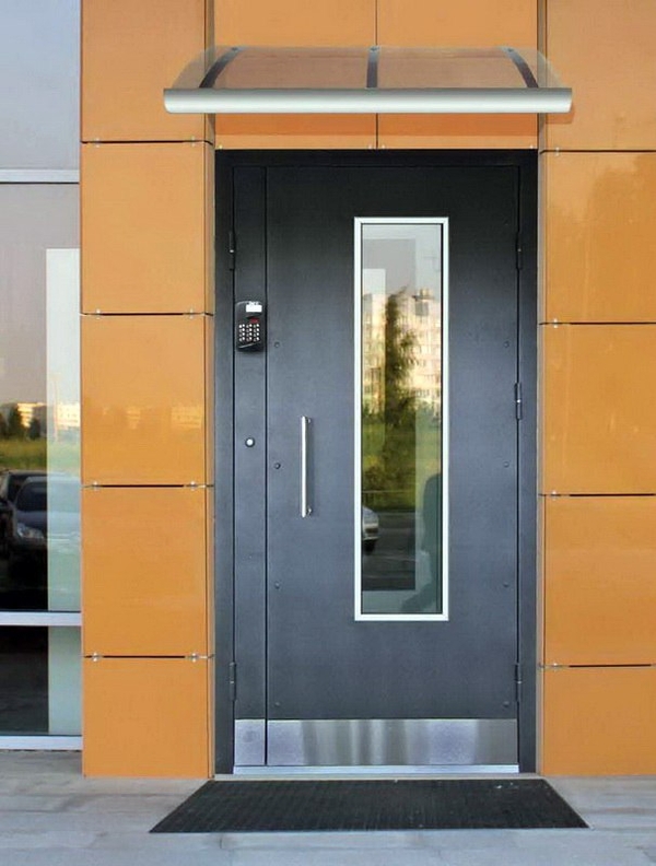 Применение обычных технических дверей не ограничивается е подвалами или подсобными помещениями, а также е гаражами. Конструкции часто применяют в виде бронированной входной двери, обеспечивая повышенный уровень защиты от взлома, проникновения в сооружение с улицы.